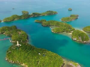 百島國家公園是由 123 座石灰岩島嶼組成,分佈在呂宋海岸附近的 Lingayen Gulf 和 Bani Town。這些島嶼以其多樣性而著稱,有些只是一個小岩礁,而有些則是大型的、被綠樹和茂密的植被覆蓋的小島。可以在百島國家公園參加各種活動,如遊覽、浮潛、潛水、皮划艇等。這裡的海域清澈見底,生態豐富,有各種各樣的魚類和珊瑚,非常適合水上活動和水肺潛水。