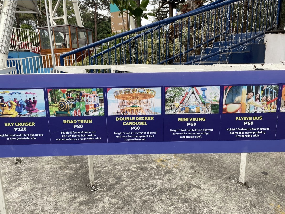 2018年成立的Sky ranch遊樂園就在SM City Baguio旁邊。收費方式是先收入場費再各項分開收費,整個遊樂園中共有11項設施。一般的設施以外也有小朋友適合的設施,大人小孩都可以一起快樂地遊玩。園區中除了遊樂設施,也有一些小遊戲的攤販可以去玩。