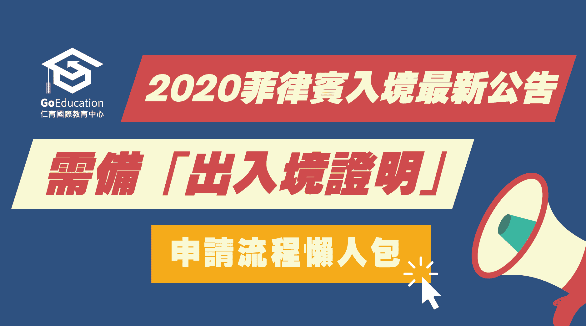 因應武漢肺炎之疫情發展,菲律賓政府公告:自2020年2月8日起,入境菲律賓之旅客,不管您是30天電子簽證或是59天紙本簽證、或是退休、居留、工作簽證,需要在入境海關時,提供『出入境證明』並且上面附有「內政部移民署」、「馬尼拉經濟文化辦事處」的戳章,共2個。 如果沒有辦理,將會原機折返,有居留身份未辦理者會被隔離14天,沒有徵兆才可入境。