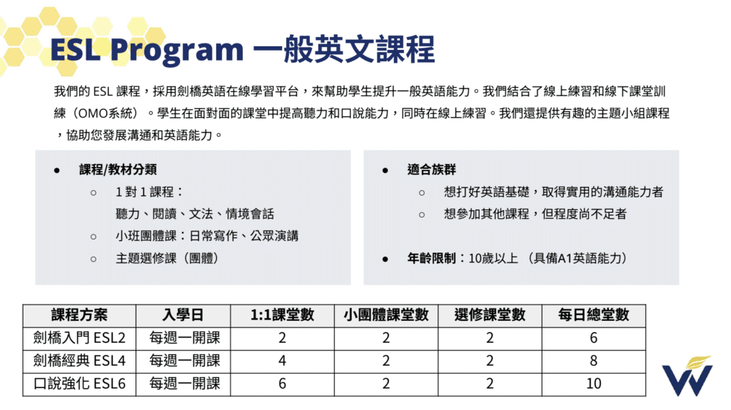 Winning語言學校ESL課程簡介